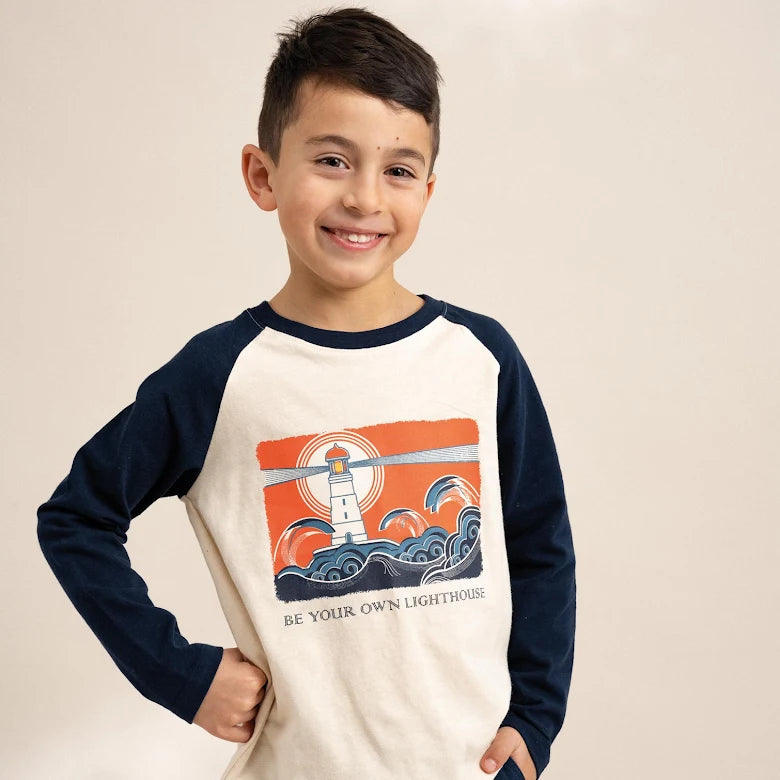 Långärmad raglantröja med vintagelook för barn i mjuk jersey gjord av en mix av bomull och ekologisk bomull. Tröjan har en rak passform och finns i flera olika färger och tryck. Tröjan ingår i vårt hållberhetsconcept Rescue Collection. Kort sammanfattat kan det beskrivas som ett etiskt förhållningssätt till mode med fokus på att eliminera tygsvinn och värna om de människor som tillverkar kläderna.