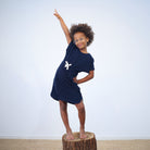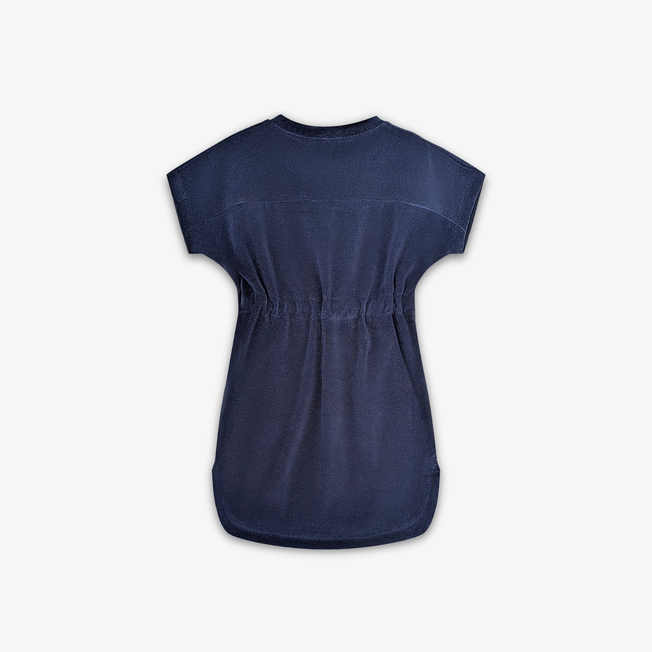 Kortärmad mjuk Terry klänning i bomull med en snygg U-ringning i halsen. Bomullstyget är gjort av samma material som våra populära badrockar i Terry / Frotté.