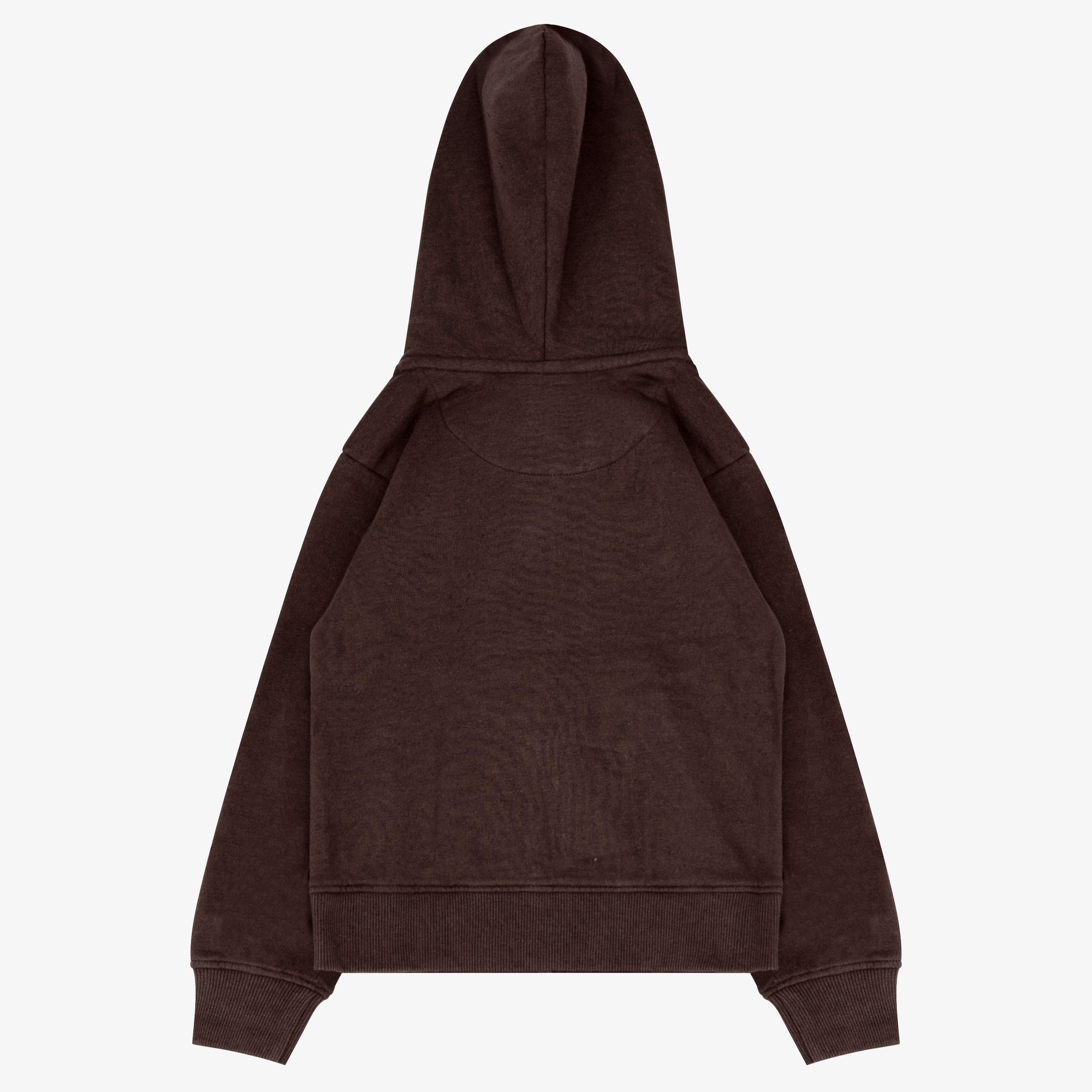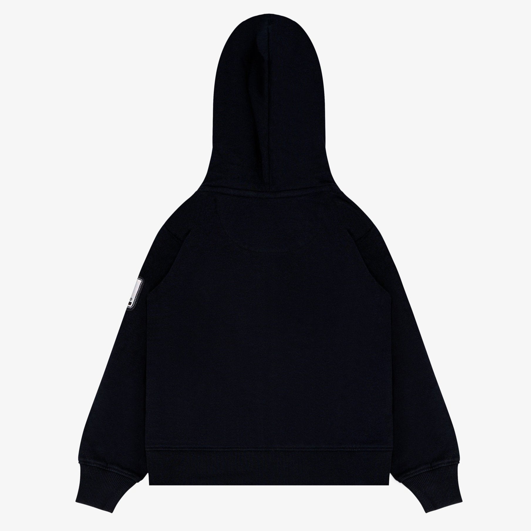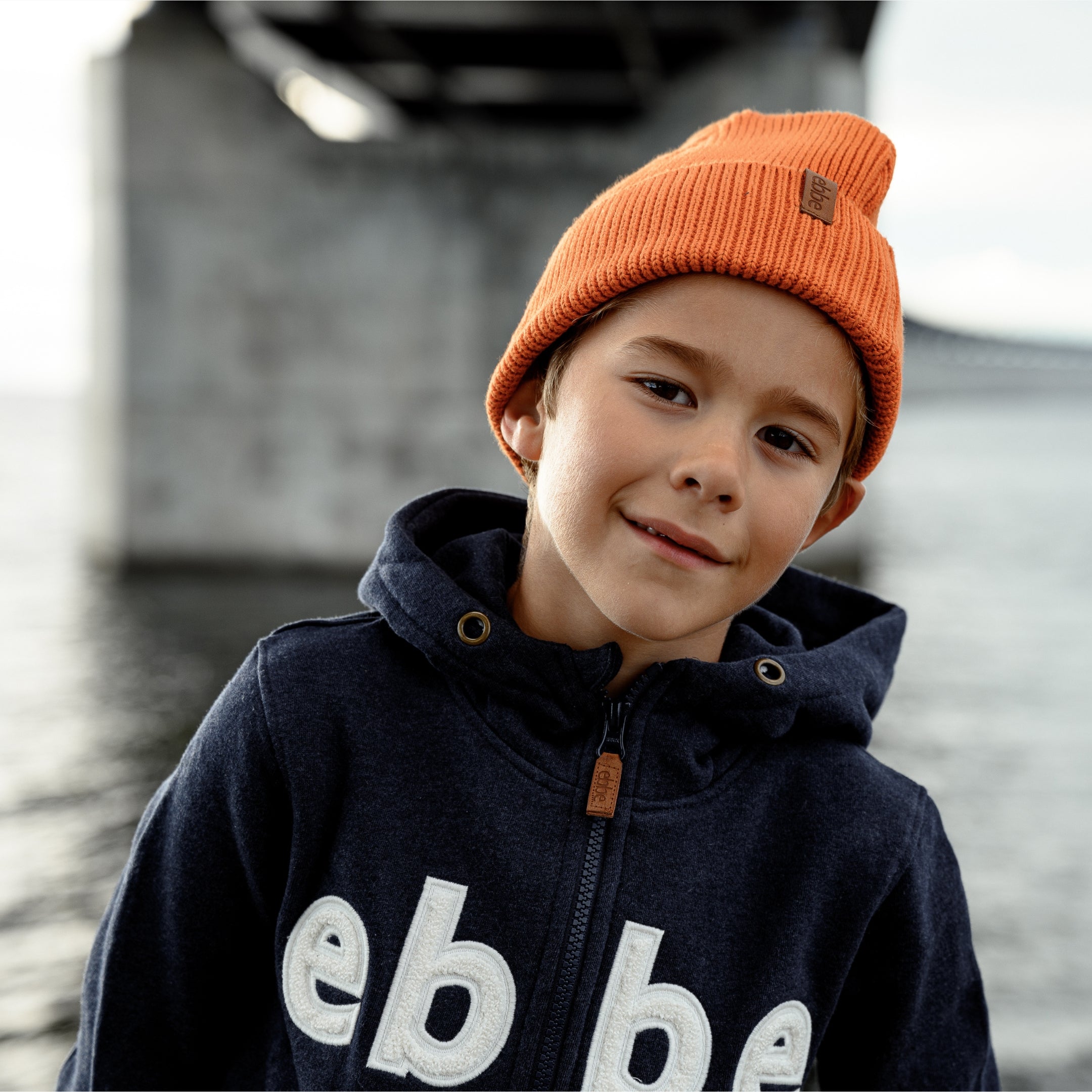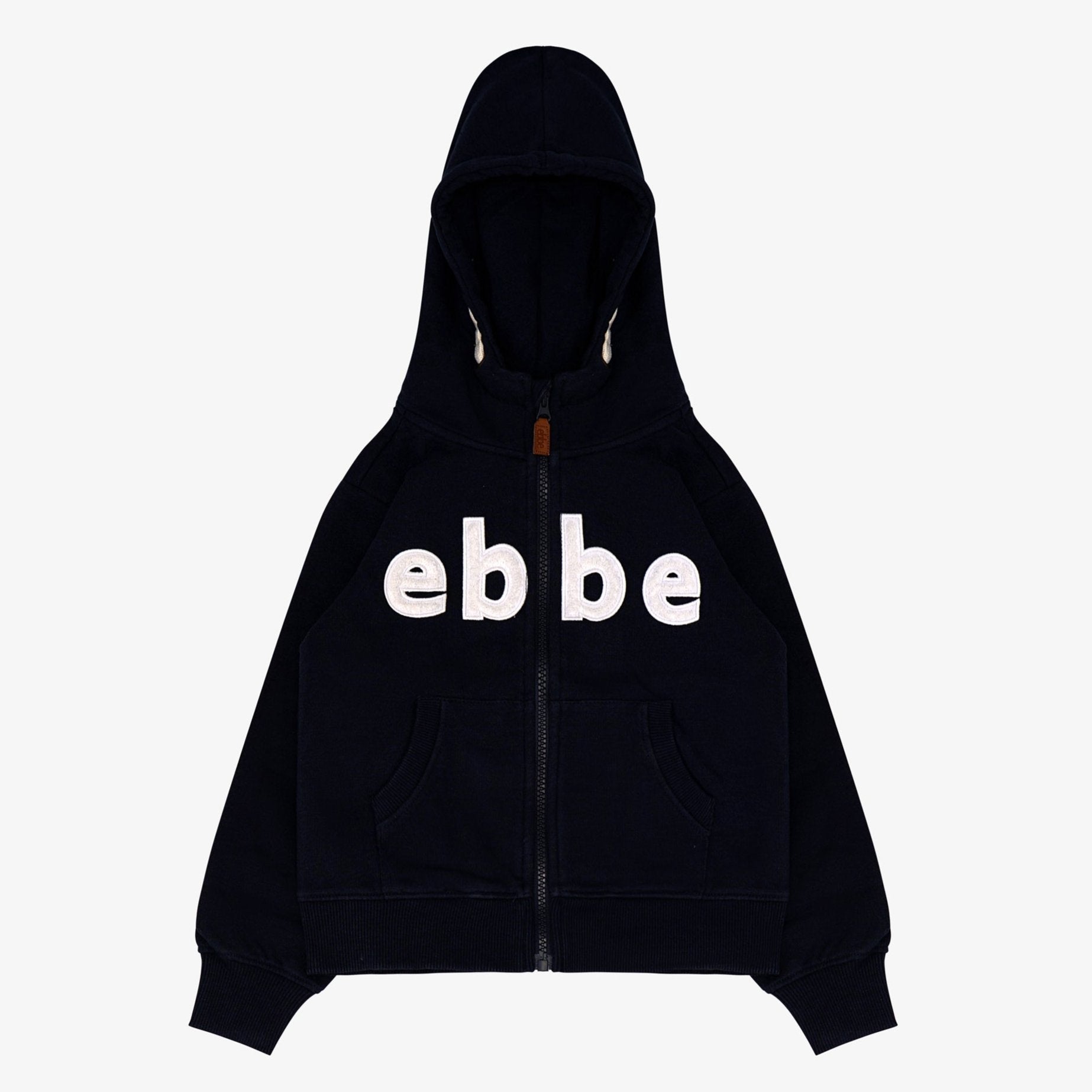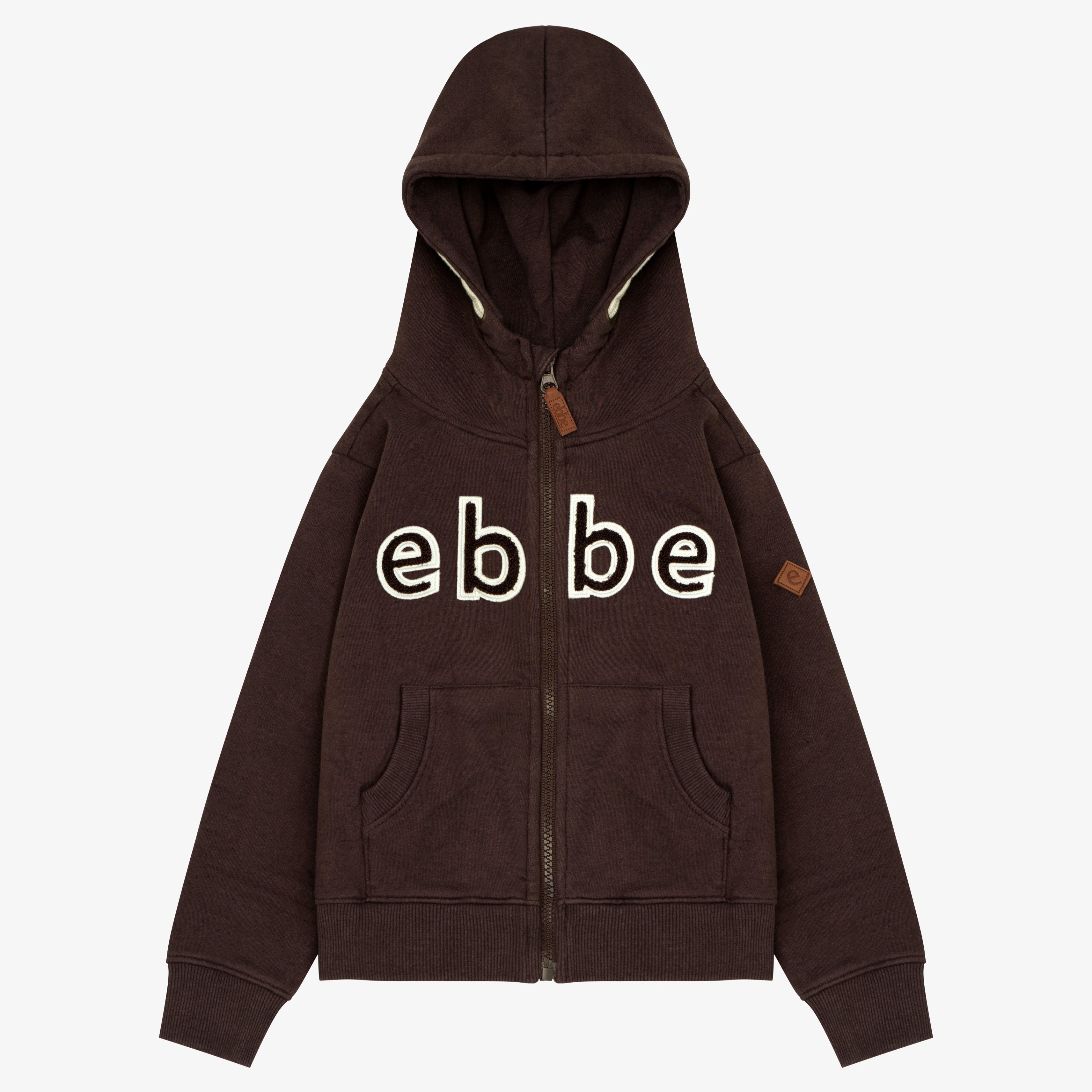 Långärmad hoodie till barn i mjuk sweatshirt kvalitet. Huva, dragkedja och bred ribb i ärm slut och nederkant. Brodyr av frotté på bröstet.