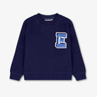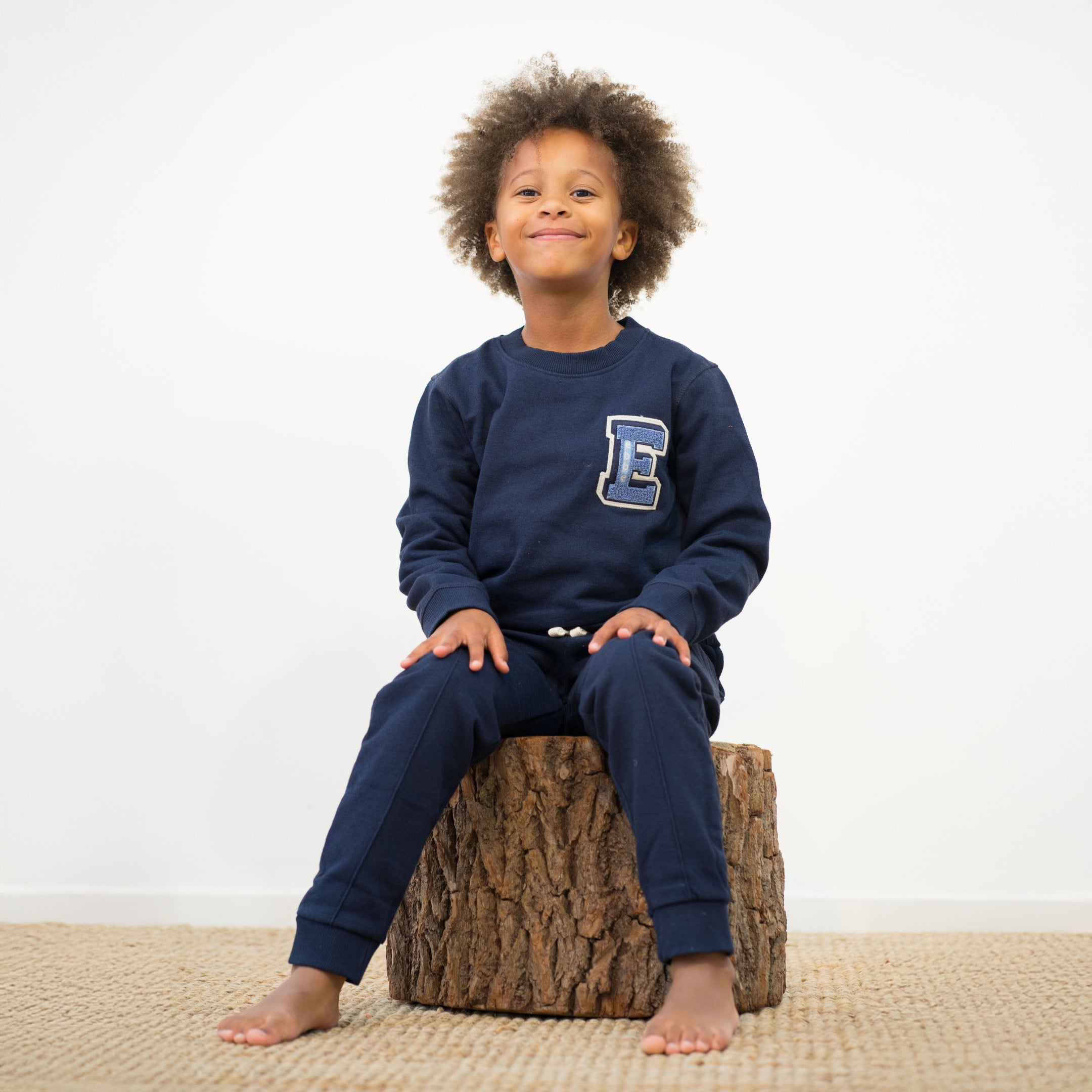 Långärmad tröja till barn i mjuk sweatshirt kvalitet. Bred ribb i halsringning, ärm slut och nederkant. Brodyr av frotté på bröstet.