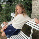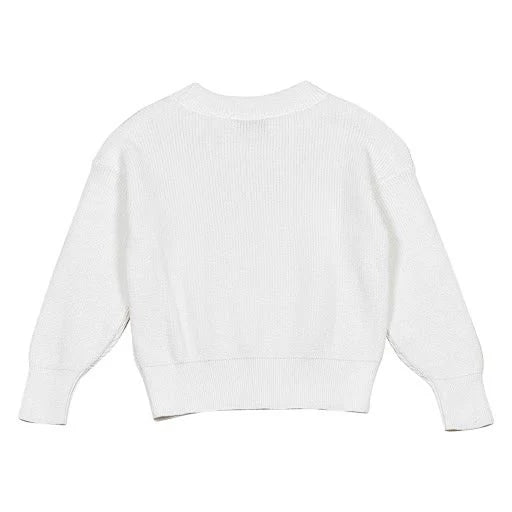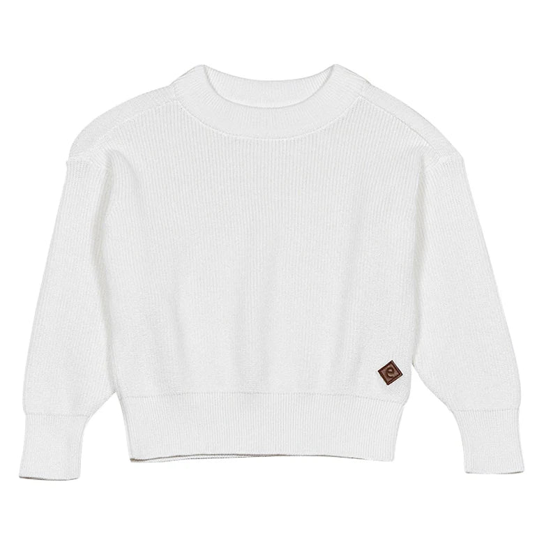 Stickad tröja till barn med långa ärmar i mjuk ekologisk bomull. Tröjan har en rund, ribbad halsringning, något nedhasade axlar och kommer i tre olika färger och mönster. Ribbade muddar i ärmslut samt i nederkant. Dekorativ etikett i läderimitation med ebbes ”e” framtill. Hållbart tillverkad i 100% ekologisk bomull.