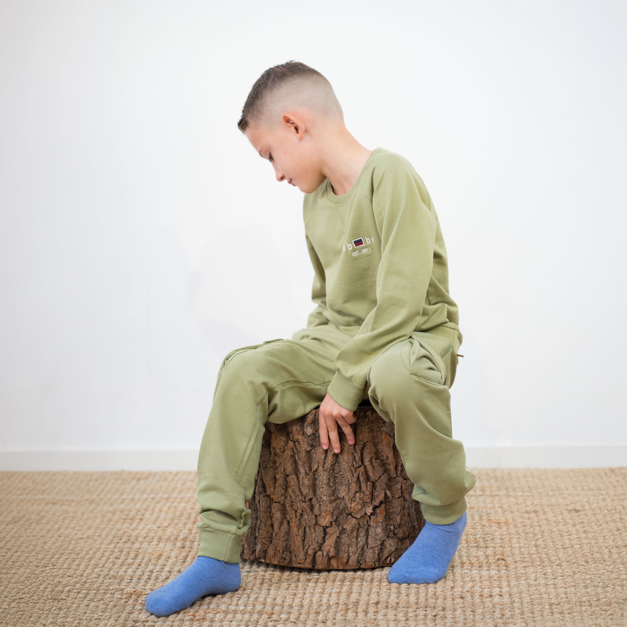 Långärmad, tunn tröja/sweatshirt till barn med broderi och raglanärm. Bred ribb i halsringning, ärmslut och i nederkant.
