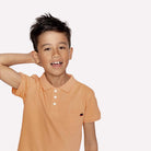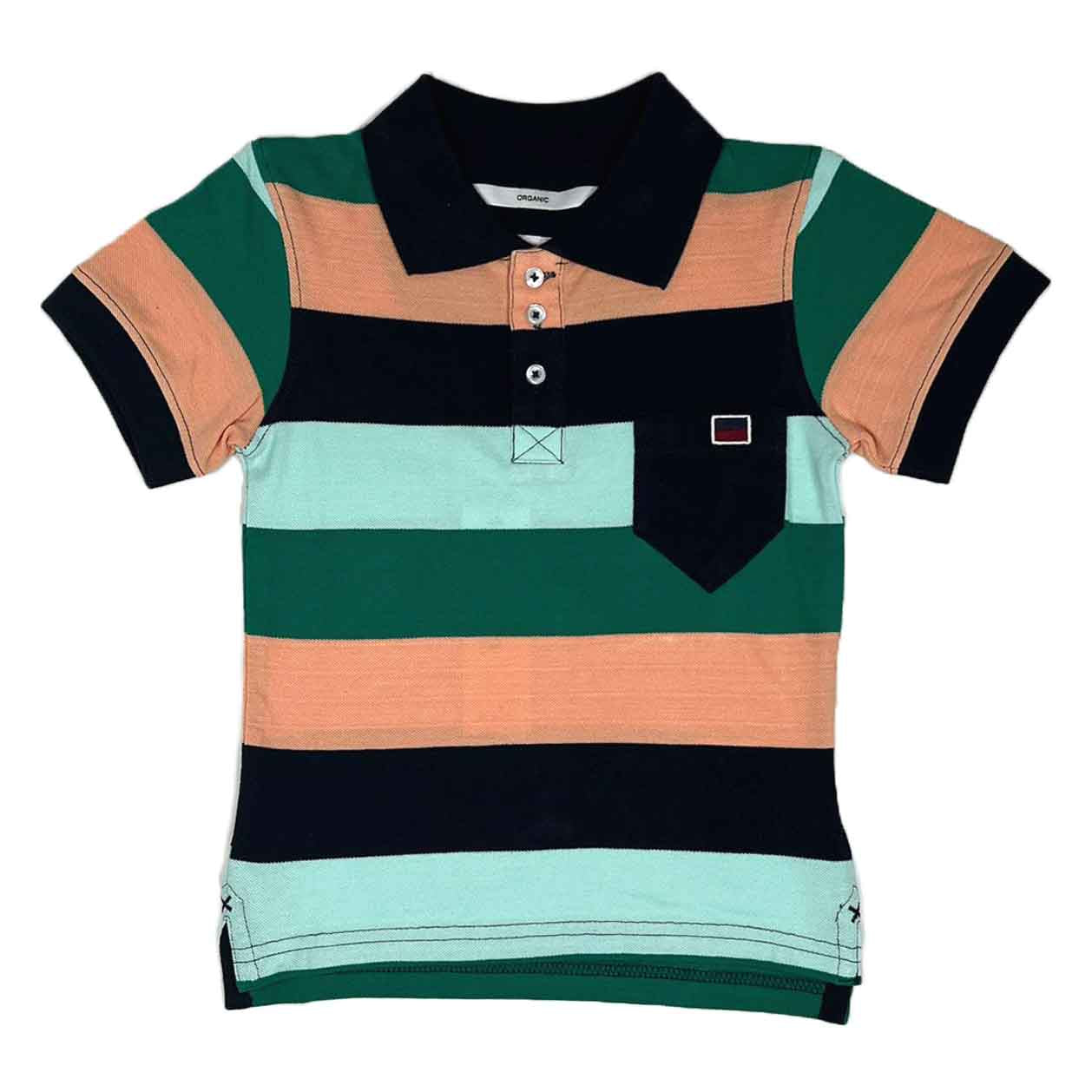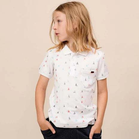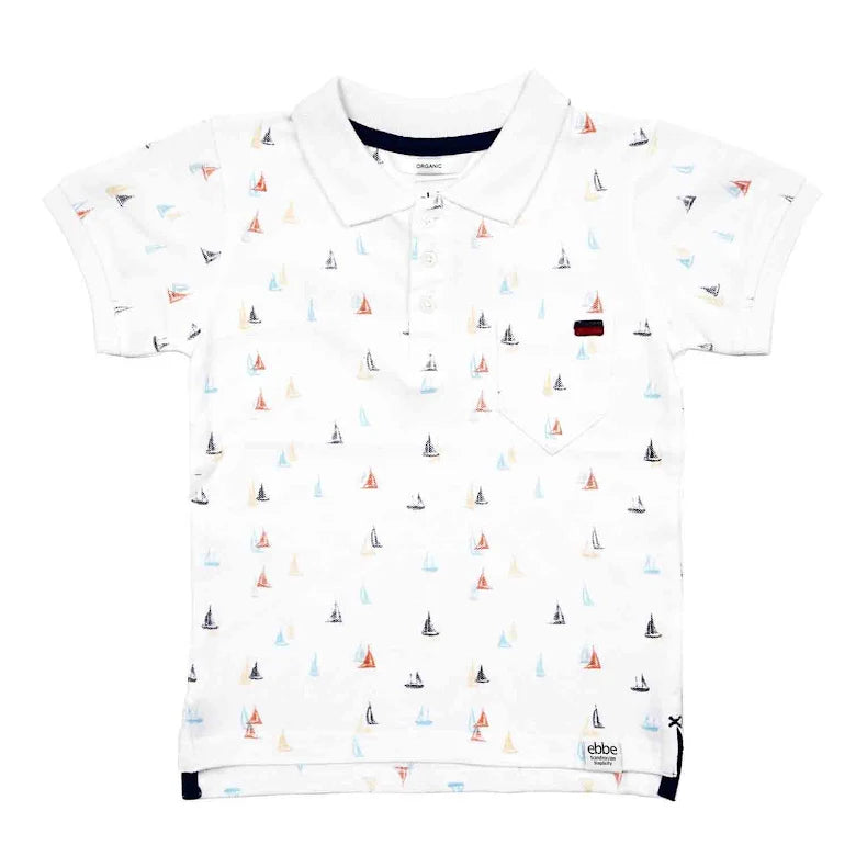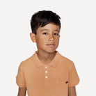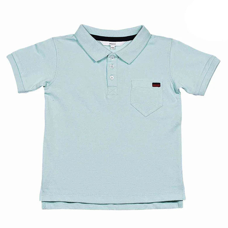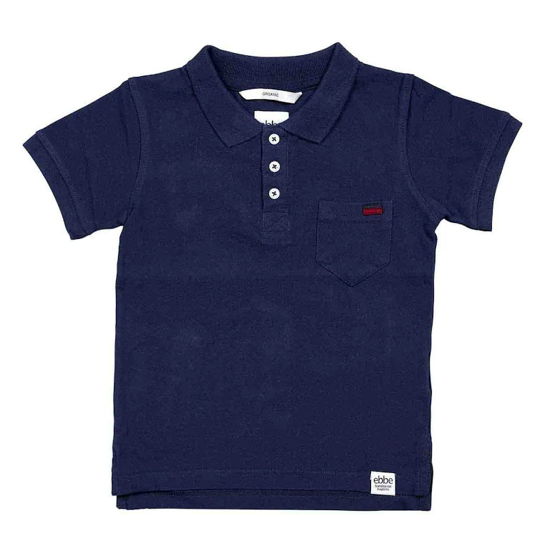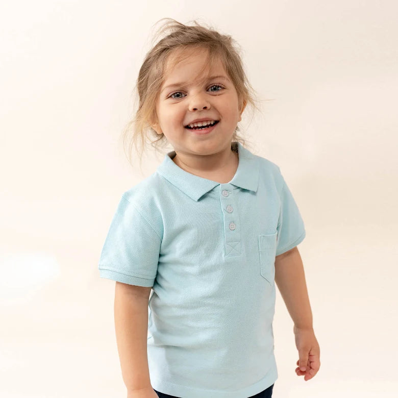 Pikétröja till barn i mjuk och skön ekologisk bomull. En fin krage med knappar fram samt en bröstficka med broderi. Sprund i sidorna nedtill.