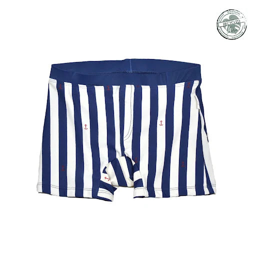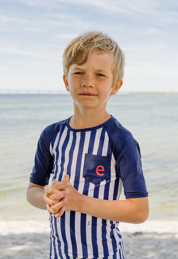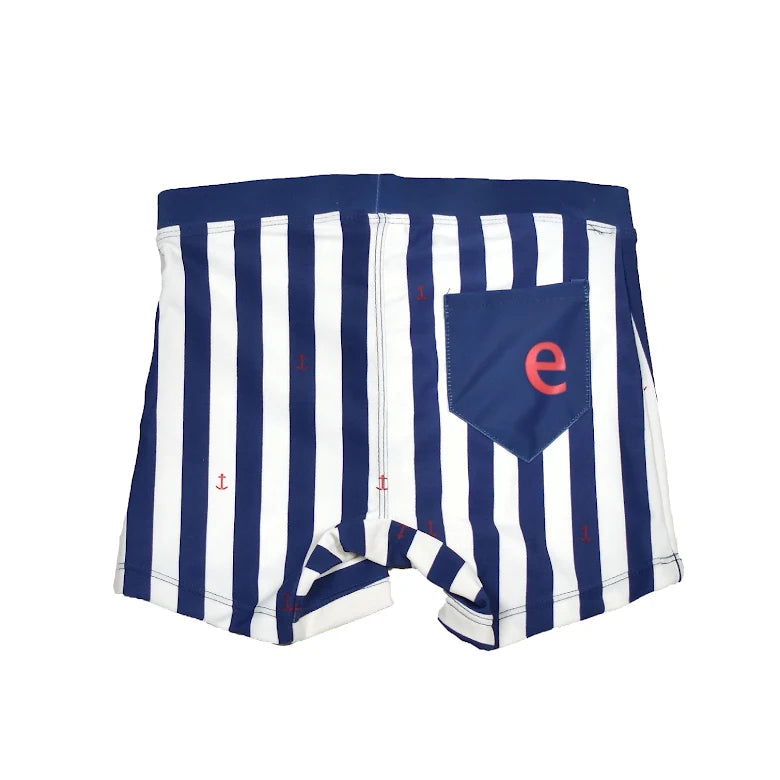 Badbyxa i åtsittande boxermodell. Helfodrad med stabil resår i midja samt en kil i gren för bra komfort. ebbes ficka bak. Mjukt UV material med solskyddsfaktor UPF50+. Säsongens badkläder är tillverkade i återvunnen polyester.