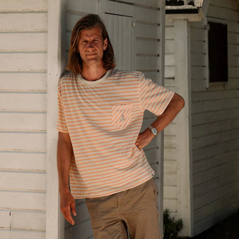 Kortärmad t-shirt i oversize modell till herr med rund halslinning och bekväm passform. Bröstficka med brodyr av ett ankare. Liten logoetikett i nederkant. Rymlig i storlek.